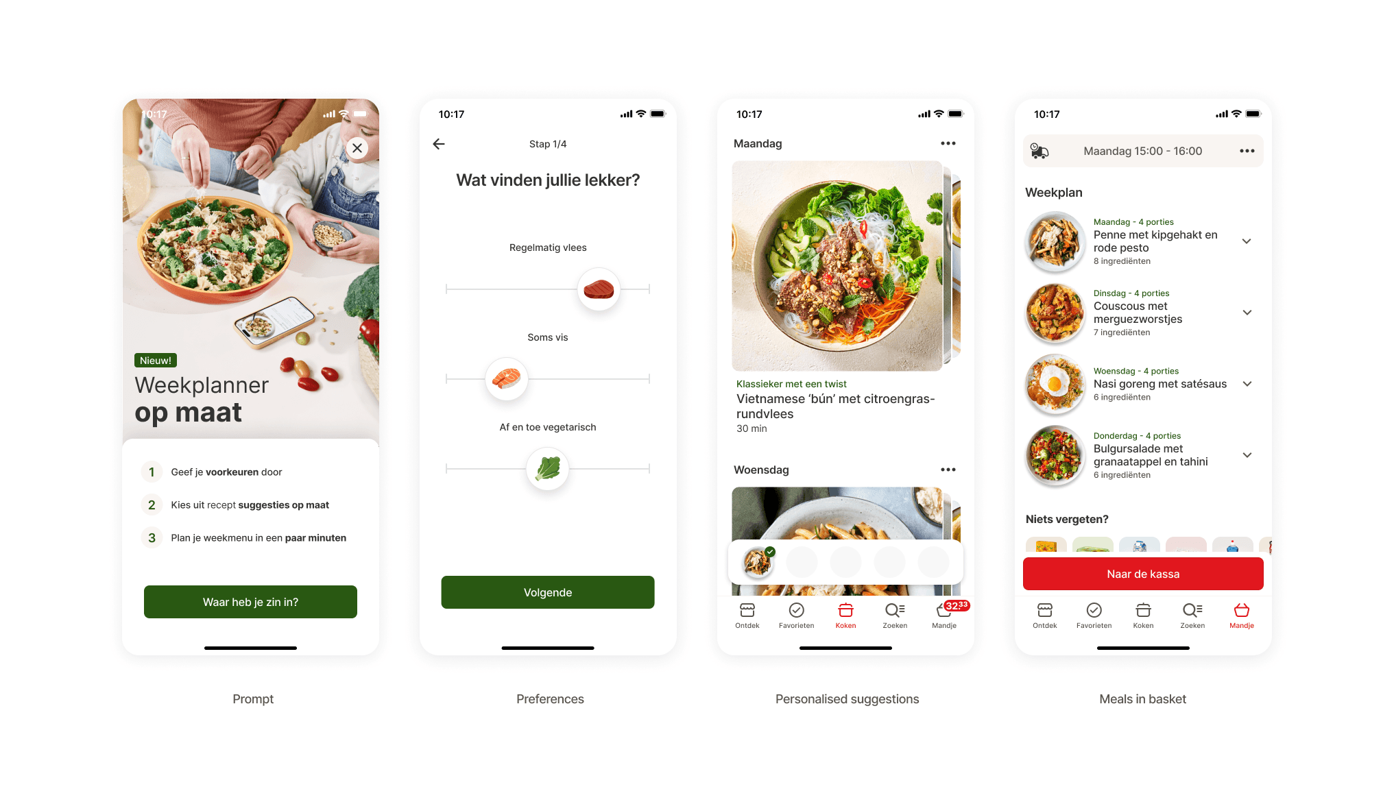 To address this challenge, we aimed to help our customers plan ahead by creating a week-planner feature. This tool encourages meal planning for several days, offering peace of mind and reducing last-minute supermarket trips. It also helps customers experiment with new recipes while staying within their comfort zones. Collaborating closely with our customers, we designed the week-planner to: